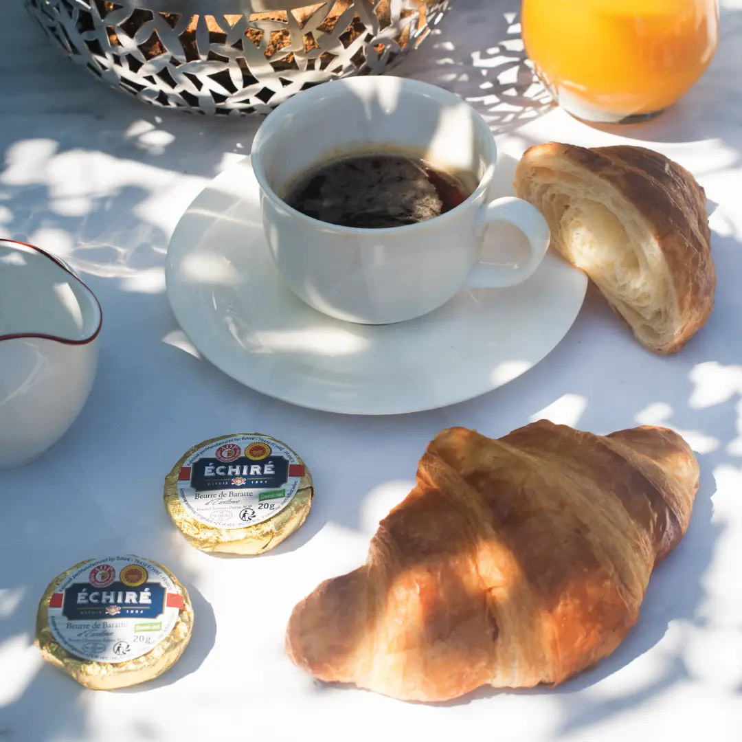 Échiré butter is certified AOP Beurre Charentes-Poitou, a quality label recognized by all professionals, which links committed producers who are passionate about promoting a terroir, a history and authentic know-how, shared from generation to generation. First butter to be awarded, AOP Beurre Charentes-Poitou comes from a unique terroir between land and sea, covering ve departments in the west of France: Charente, Charente-Maritime, Deux-Sèvres (where Échiré is located), Vienne and Vendée.