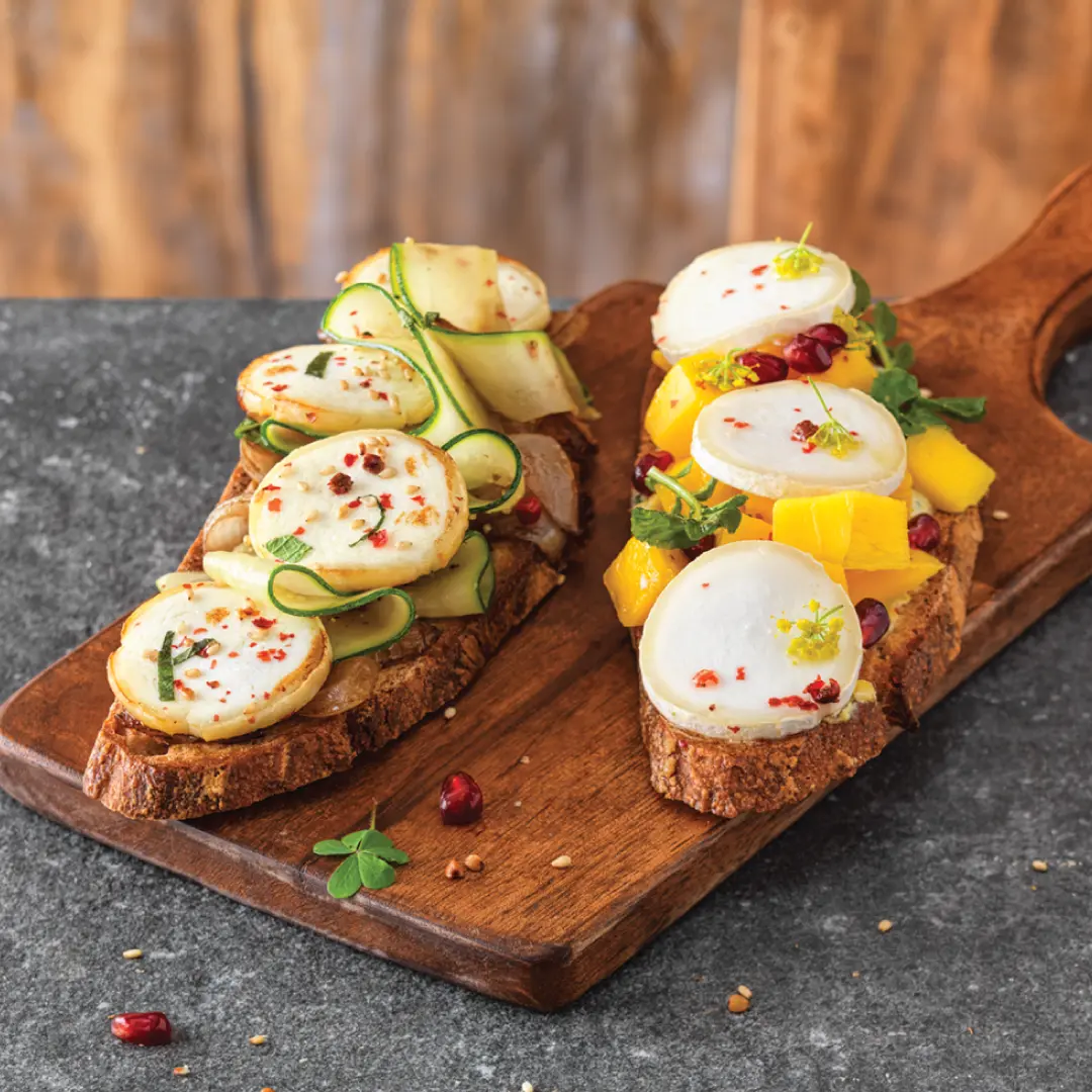 Our IQF pre-sliced cheeses offer a smooth, creamy texture with a subtle hint of acidity, available in a variety of shapes and sizes. Pre-sliced and evenly cut, it maintains its distinct flavor profile without sticking together, Ideal for many foodservice applications like sandwiches, paninis, pizzas, tarts, quiches, salads, etc. This format delivers the same fresh taste as if the cheese was just made.