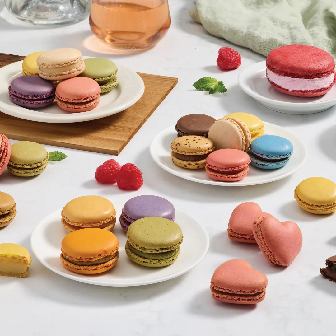 Our products have been manufactured in Western France since 2005. They are the result of a subtle balance of premium ingredients, strictly selected raw materials and mastered savoir-faire. The macarons’ delicious fillings and tasty meringue-based shells are entirely made by our skilled in-house pastry chefs, using some of the finest raw materials available (fresh almonds, chocolate ganaches, fruit purees), to give them their unique taste.